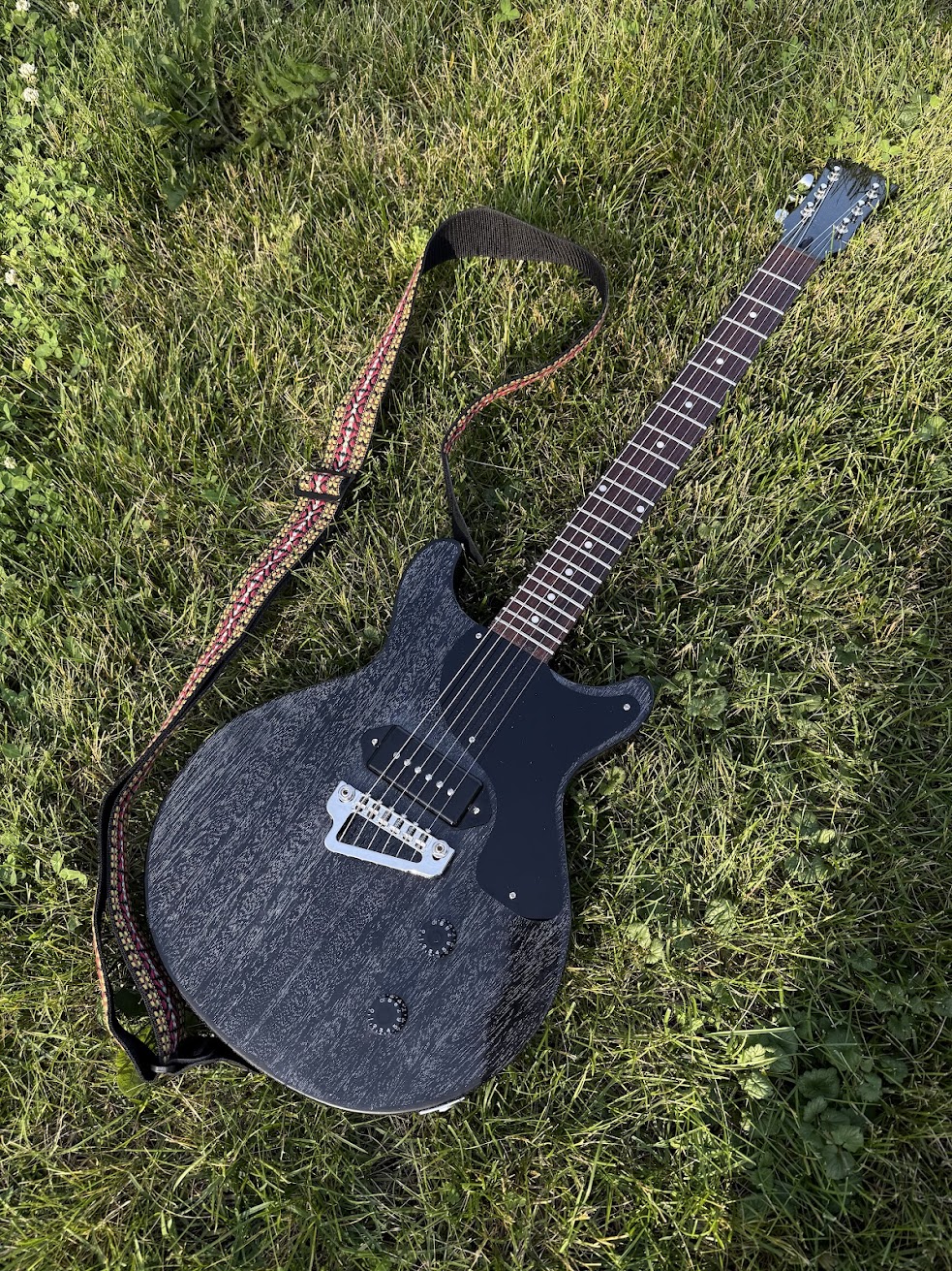 Thought I’d send you some pics. Feel free to share them on your gallery page. I took your Junior SingleCut kit and shaved off 5/16” from the body top and 5/16” from the heel of the neck. Taking 5/16” off the body top exposed to the entire control cavity on the top, so I just used a control cavity cover there. For the rest of the build, I used some old parts and some new parts and I’m very pleased with the end result.