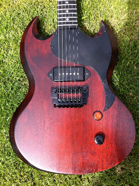 Posted on August 22, 2012 by phil Dark Red SG style… This is just a beautiful paint job on our guitar, black and red blending. Post navigationPrevious post: You Gotta Check This One Out…Next post: Chris’ Insanely Cool and Beautiful Double Cut